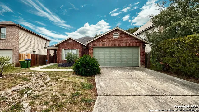 Located in the great community of Bridgewood Estates is this single-story home on a GREENBELT featuring 1614 sq ft living space, 3 bedrooms, 2 full bathrooms, and good size covered patio perfect for entertaining. With CERAMIC TILES, WOOD LAMINATE, neutral colors, and blinds throughout. NO CARPETS!!! This gem will not fail to impress with its spacious kitchen and lots of cabinets for storage. Its primary suite is nestled in the corner of the home for optimum privacy. It boasts a large walk-in closet, double vanity, walk in shower, and oversized garden tub. Outdoor entertaining is a breeze with its covered patio and privacy fence. Just minutes to La Cantera Mall, UTSA, and Valero Headquarters. Close to shopping, restaurants, and major employers like Citibank, Wells Fargo, Chase, Nationwide Insurance, and QVC. With quick access to 1604 and I-10.