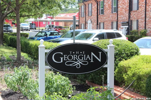 Welcome home to this charming 2-bedroom, 2-bath condo in The Georgian, perfectly situated in the heart of Alamo Heights. Just minutes from Loop 410, HWY 281, The Quarry Market, offering premier dining and shopping options, and the San Antonio International airport. Residents enjoy elevator access, a peaceful tree-filled courtyard with covered tables and chairs, swimming pool, gated community entrance, BBQ grills, private library, and large laundry facility-offering comfort, convenience, and community.
